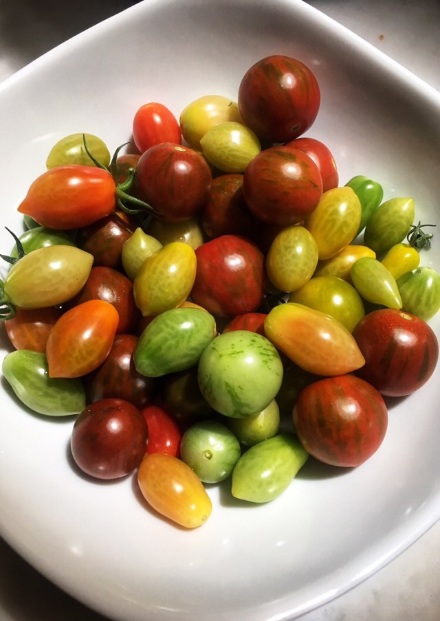 But sometimes you have to mix it up, so here we have it. I came across this idea when I had a glut of tomatoes, which I panic-bought in preparation for a Mexican night at my house. I thought we didn’t have enough salsa, we did. Two kilos (?!) of unused tomatoes later, I ended up making a fairly benign roasted red pepper and tomato soup. But this recipe stuck with me. It was something that I don’t think would have ever occured to me, and I was eager to try it. My farmers market provided me with the perfect mixed variety of mini tomatoes to give it a go.