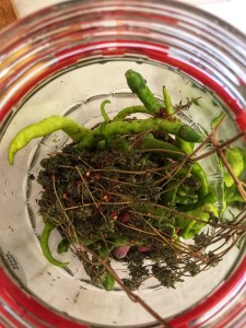 Feel free to play around with any herbs like dill, marjoram, savory or oregano. My mother-in-law always adds herbs to her pickled green peppers, so I added a Turkish pickling herb colloquially called the Tarhana herb.