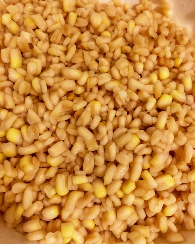 Once desired tenderness is achieved remove from heat, cover and let stand overnight. Take your pot to the sink and strain most of the water. Then, with the water running into the pot, take the kernels and rub them vigorously between your hands. This process will remove the hulls of the corn. Drain and repeat until the corn has become a vibrant shade and the water is clear. Similar to washing rice for sushi. Drain well. Note: If you are not able to use the nixtamalized corn right away it can be stored in fresh water in your refrigerator.