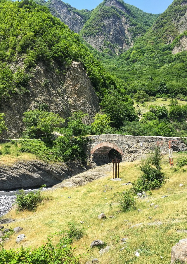 Sites of interest are the Sumuq Qala museum which is both a 17th century defense tower and a movie star! Featured prominently in the 1981 smash hit USSR film Qorxma mən səninləyəm “Do not be afraid, I am with you”. Swoon! Be sure to click on the link, the YouTube video will not disappoint. Not to be overshadowed is the 18th century stone Ulu Mosque and an equally lovely 16th century bridge, also made of river stones.